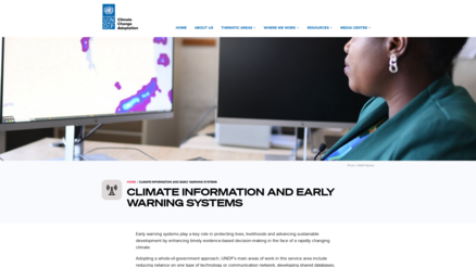 The UNDP webpage “Climate Information and Early Warning Systems” explains how climate information and early warning systems help countries and communities better prepare for and respond to climate-related hazards such as extreme weather events, floods, heatwaves and droughts. It describes UNDP’s approach to strengthening climate data collection, forecasting, communication and decision-making, as well as building partnerships and capacity to reduce risk, protect lives and support sustainable development in the face of a rapidly changing climate.