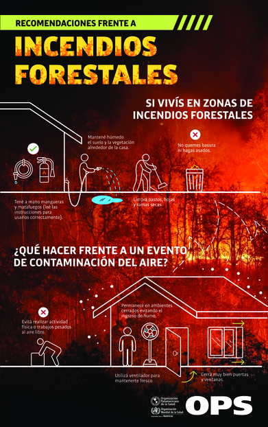 En esta sección vinculada al fenómeno climático de incendios forestales se puede acceder a las principales recomendaciones sobre: ¿qué hacer frente a un evento de contaminación del aire? y ¿qué hacer en zonas de incendios forestales?