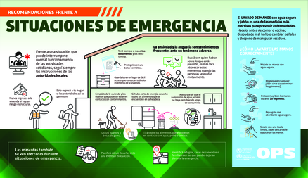 En esta sección se puede acceder a las principales recomendaciones sobre: seguimiento de instrucciones de autoridades locales; lavado de manos con agua segura para evitar enfermedades; cuidado de documentos personales y medicamentos; salud mental ante situaciones críticas o de emergencia; evacuación (regreso a casa); cuidado de las mascotas.