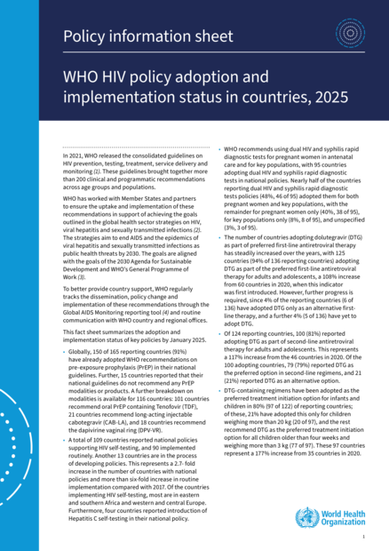 WHO HIV policy adoption and implementation status in countries, 2025