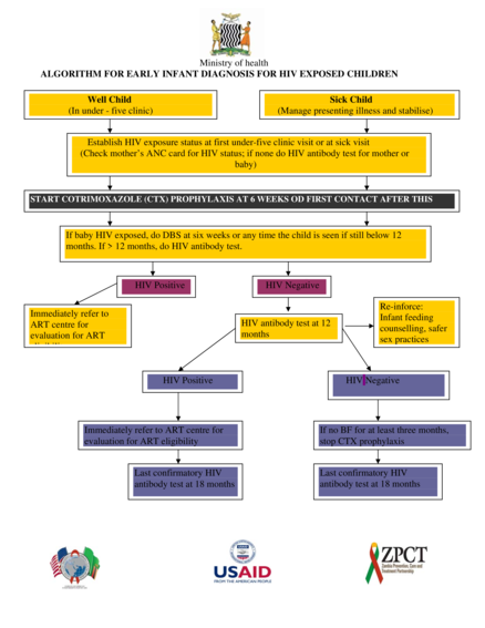 If baby HIV exposed, do DBS at six weeks or any time the child is seen if still below 12 months. If > 12 months, do HIV antibody test.