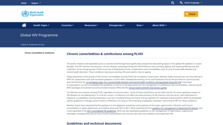 The earlier initiation and expanded access to antiretroviral therapy have significantly reduced the devastating impact of the global HIV epidemic in recent decades. The HIV infection has become a chronic disease, and people living with HIV (PLHIV) are now surviving, ageing, and requiring lifelong care and treatment. Across all age groups, PLHIV are at risk of developing chronic complications and comorbidities, such as noncommunicable diseases and mental health disorders. These conditions may be pre-existing, HIV-associated or due to ageing.