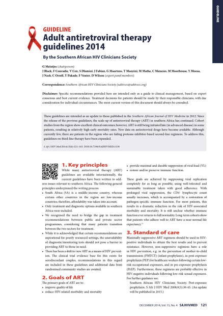 Guideline Adult antiretroviral therapy guidelines 2014