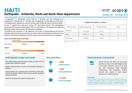 Haiti: Earthquake - Artibonite, North and North-West departments - Briefing note – 12 October 2018