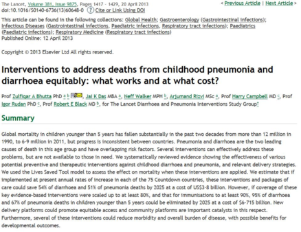 Lancet 2013; 381: 1417–29 Series: Childhood Pneumonia and Diarrhoea No.2