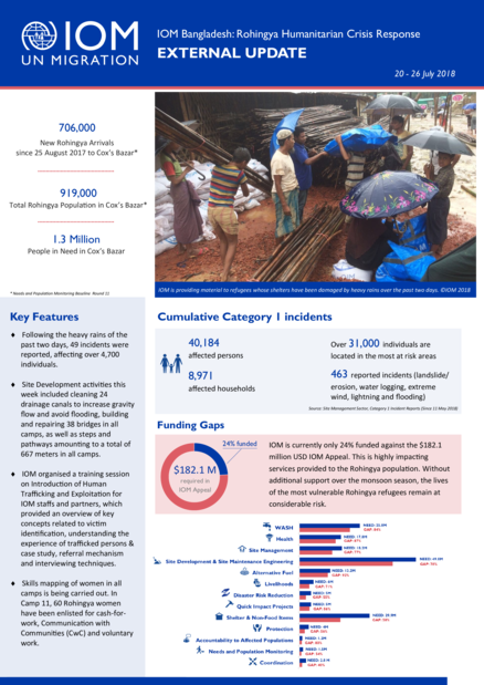 IOM Bangladesh: Rohingya Humanitarian Crisis Response - External Update, 20-26 July 2018