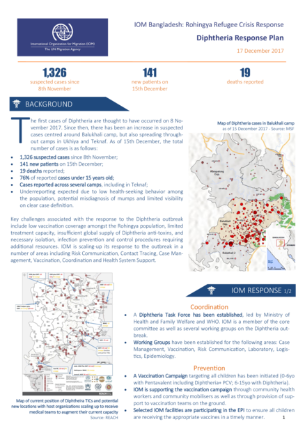 IOM Bangladesh: Rohingya Refugee Crisis Response - Diphtheria Response Plan (17 December 2017)