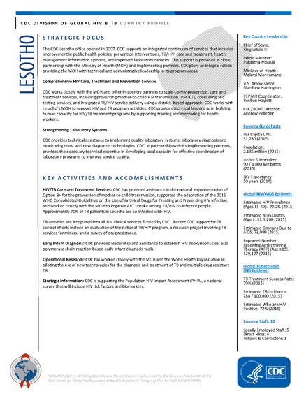 Lesotho: CDC DIVISION OF GLOBAL HIV & TB COUNTRY PROFILE