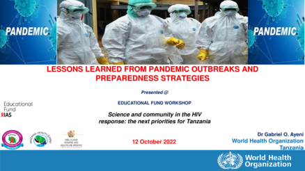 The presentation “Lessons Learned from Pandemic Outbreaks and Preparedness Strategies” discusses key insights from past pandemics—such as COVID-19, HIV/AIDS, and influenza—and emphasizes the importance of stronger global preparedness. It outlines strategies for improving pandemic response, including strengthening health systems, enhancing surveillance, implementing the International Health Regulations (IHR 2005), conducting risk and vulnerability assessments, and promoting intersectoral collaboration through a One Health approach. The presentation highlights the need for resilient health systems and communities, political commitment, scientific innovation, global solidarity, and sustained investment in preparedness to better respond to future public health emergencies.