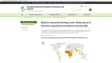 This ECDC overview summarises the number of travel-associated malaria cases reported in the EU/EEA in 2023. The cases are based on confirmed reports through the EpiPulse platform and only include infections acquired outside mainland Europe. The data show the number of cases and the infection rate per 100,000 travellers by country of infection. The aim is to inform public health authorities and travellers about malaria risk. Analyses are limited to locations with repeated cases or sufficient case numbers. Infection rates were calculated using IATA air travel data. The findings reflect reported cases only and do not imply ongoing transmission.
