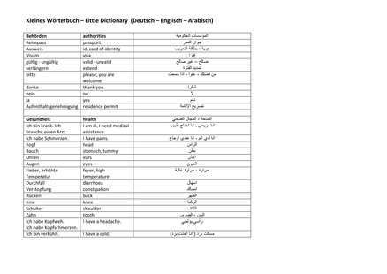 Mini-Wörterbuch für syrische Flüchtlinge