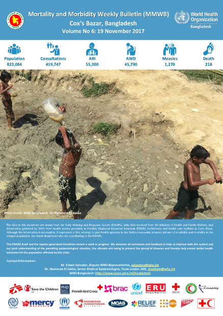 Mortality and Morbidity Weekly Bulletin (MMWB Cox’s Bazar), Bangladesh Volume No 6: 19 November 2017