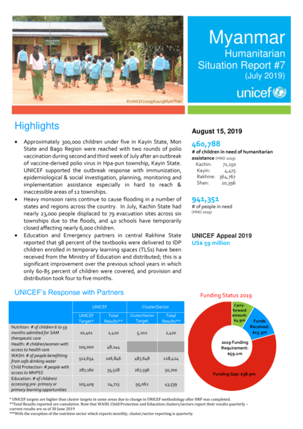 Myanmar Humanitarian situation report #7 (July 2019)