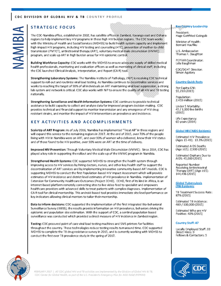NAMIBIA: CDC DIVISION OF GLOBAL HIV & TB COUNTRY PROFILE