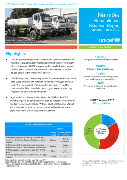 UNICEF Namibia El Nino/Drought Mid-Year Situation Report – January to June 2017 | Report #3
