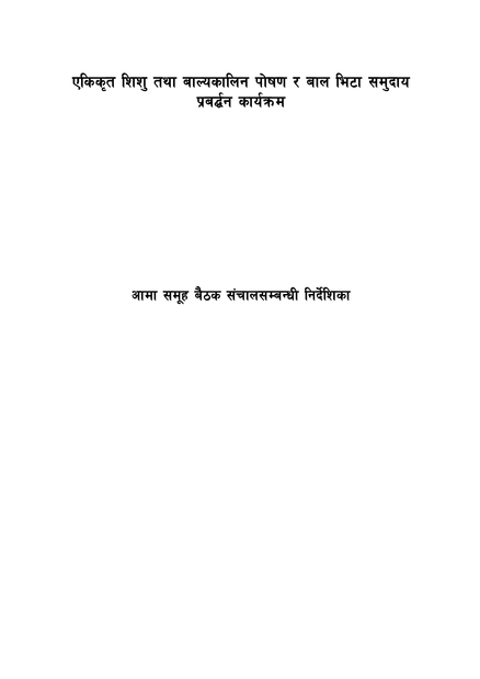 Nepal: Community Promotion of IYCF and Bal Vita Programme, Mothers Group Meeting Guideline (Nepali Version)