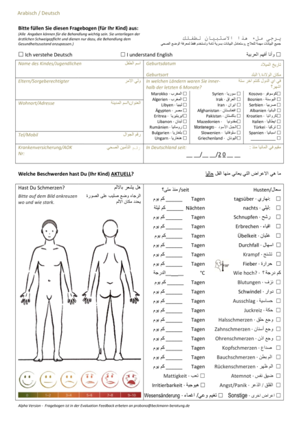Pädiatrischer Anamnesebogen deutsch-arabisch