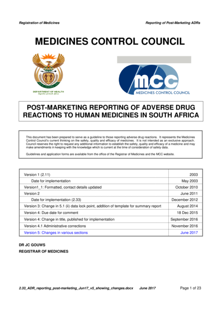 Medicines Control Council (MCC), Department of Health Republic of South Africa