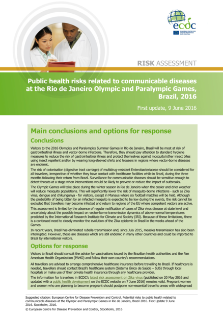 Public health risks related to communicable diseases at the Rio de Janeiro Olympic and Paralympic Games, Brazil 2016, first update