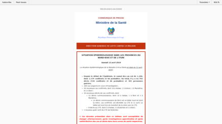 Situation épidémiologique dans les provinces do Nord-Kivu et de l'Ituri Samedi 13 avril 2019