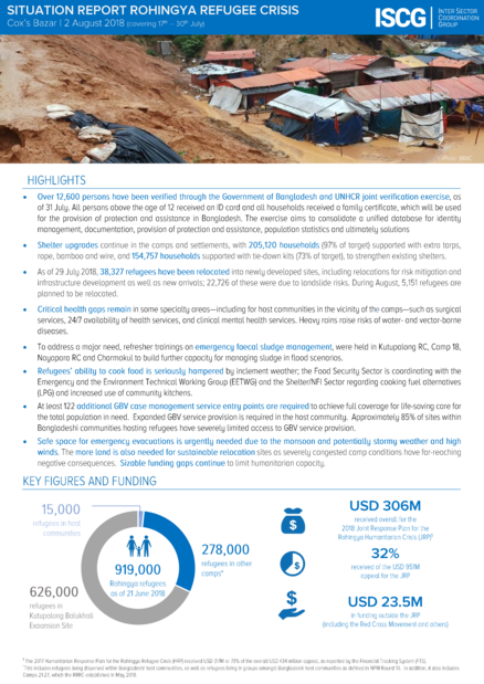 Situation Report Rohingya Refugee Crisis, Cox's Bazar 2 August 2018