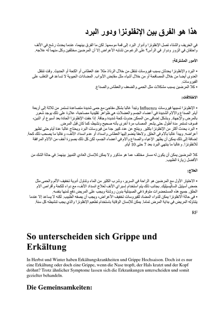 So unterscheiden sich Grippe und Erkältung . Arabic/German