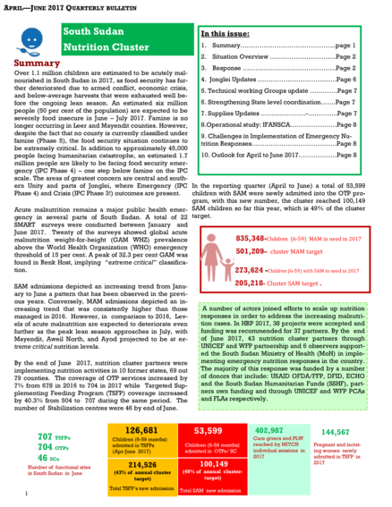 South Sudan Nutrition Cluster: April - June 2017 Quarterly Bulletin