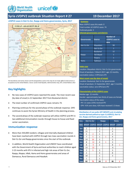 Syria cVDPV2 Outbreak Situation Report 29 - 9 January 2018