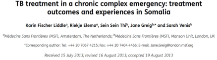 TB treatment in a chronic complex emergency: treatment outcomes and experiences in Somalia
