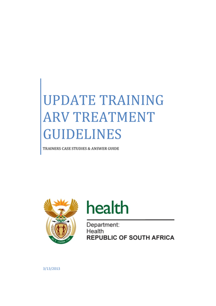 The South African Antiretroivral Treatment Guidelines 2013: Fixed dose combination case studies and answers guide