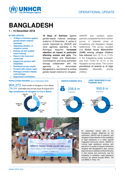 UNCHR Bangladesh Operational Update, 1-15 December 2018