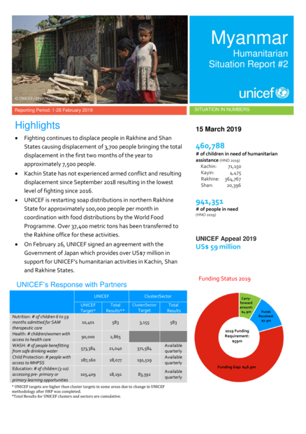 UNICEF Myanmar Humanitarian Situation Report Nr. 2 - 15 March 2019