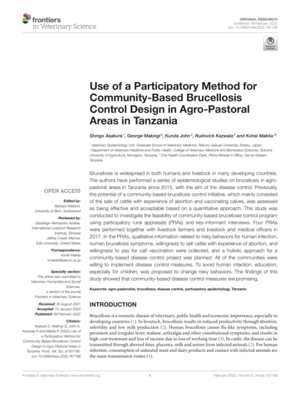 Use of a Participatory Method for Community-Based Brucellosis Control Design in Agro-Pastoral Areas in Tanzania
