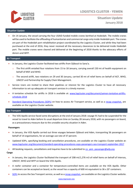 Yemen: Logistics Cluster Situation Update (January 2018)