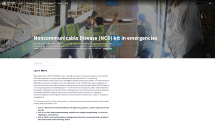 We are pleased to offer the NCD kit online training course for emergency managers and technical staff in emergencies to ensure rapid, adequate and cost-effective use of the existing Noncommunicable Disease (NCD) kit in emergency health operations to reduce the vulnerability of affected communities and address their priority health needs. The NCD kit is a pre-packed set of essential medicines and medical devices to meet priority noncommunicable disease (NCD) needs of an outreach population of 10 000 people for three months in emergencies, when medical facilities and regular supply has been disrupted. The training aims to assist all those involved in leading and coordinating health emergency operations, assessing the needs, planning for supplying, implementing and monitoring the continuity of essential NCD services at all levels of emergency management.