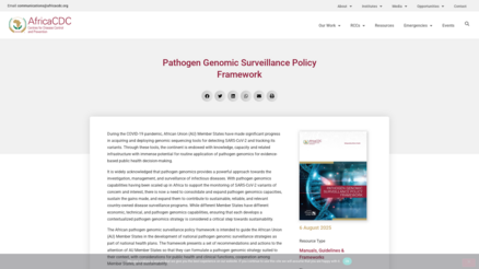 The text “Pathogen Genomic Surveillance Policy Framework (2023)” is a strategic framework developed by Africa CDC to strengthen genomic surveillance of pathogens in the Member States of the African Union.