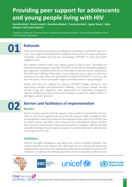 Providing peer support for adolescents and young people living with HIV. Poly Brief