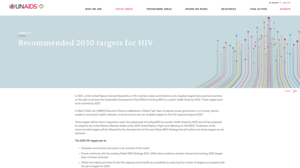 These targets define what is required to reach the global goal of ending AIDS as a public health threat by 2030 and will be proposed for adoption by United Nations Member States at the 2026 United Nations High-Level Meeting on HIV/AIDS. Finalization of the recommended targets will be followed by the development of the next Global AIDS Strategy that will outline how these targets can be achieved.