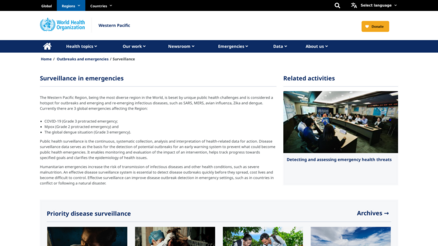 The Western Pacific Region, being the most diverse region in the World, is beset by unique public health challenges and is considered a hotspot for outbreaks and emerging and re-emerging infectious diseases, such as SARS, MERS, avian influenza, Zika and dengue. Currently there are 3 global emergencies affecting the Region: