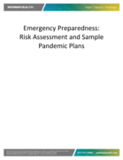 sasters, technical failures, and disease outbreaks. The text outlines how to develop emergency preparedness and pandemic plans, including key elements like communication, staffing, resource management, and coordination with local, state, and federal authorities. It also describes the four phases of emergency management—mitigation, preparedness, response, and recovery—and emphasizes continuous evaluation and improvement. Overall, the document aims to help healthcare organizations ensure continuity of care and protect patients and staff during emergencies.